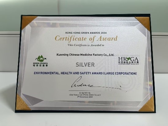 À¥ÖÐÒ©ÈÙ»ñ2024ÄêÏã¸ÛÂÌÉ«ÆóÒµ´ó½±¡ª¡°³¬×¿»·±£Çå¾²¿µ½¡½±¡±Òø½±