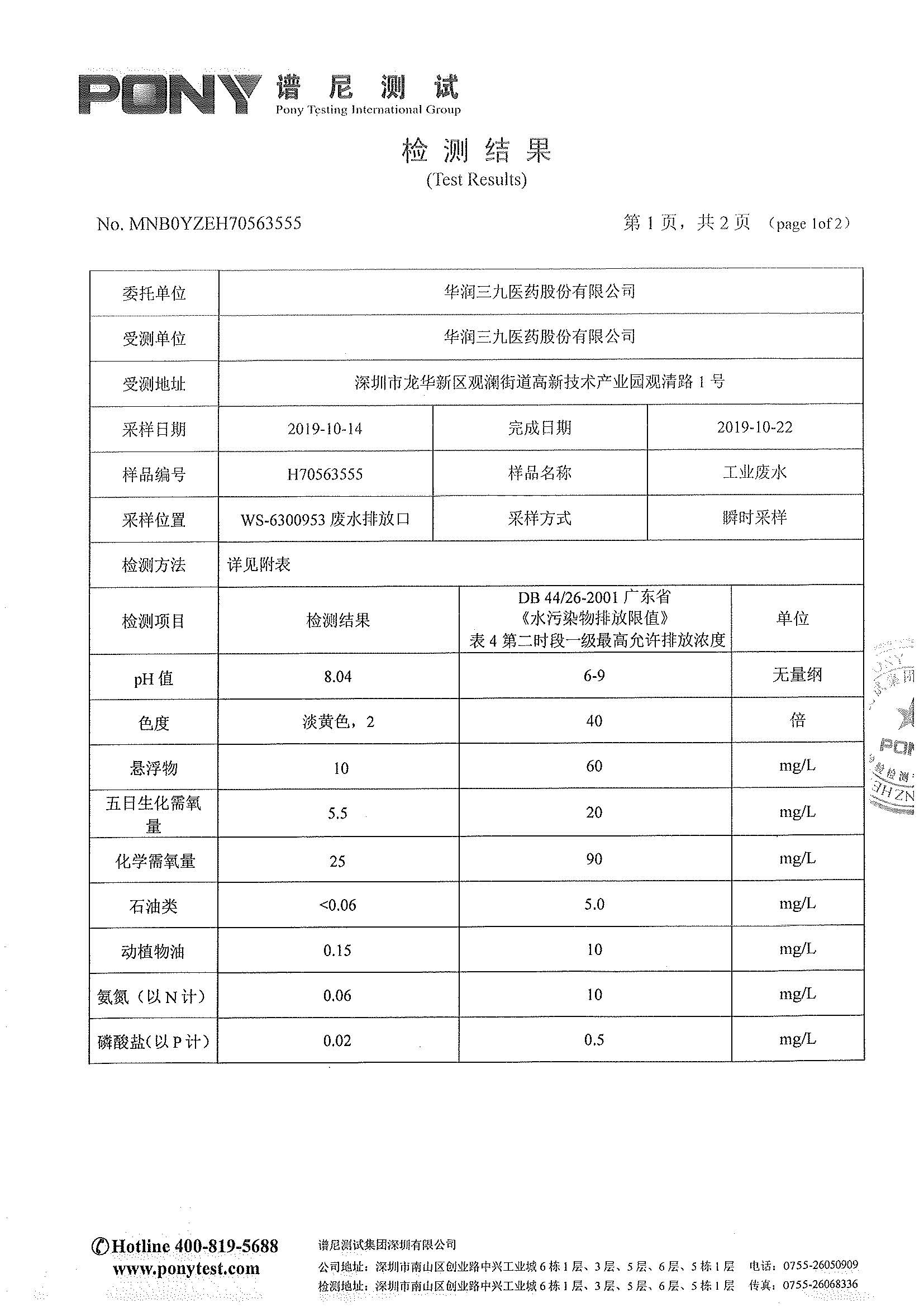 新宝gg创造奇迹废水检测报告(2019年10月)