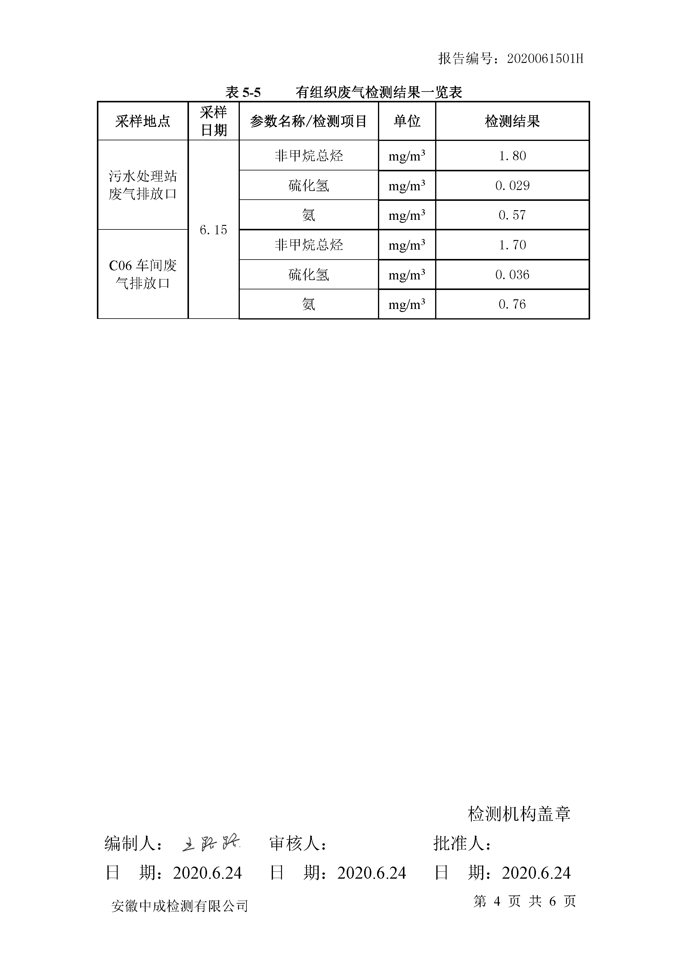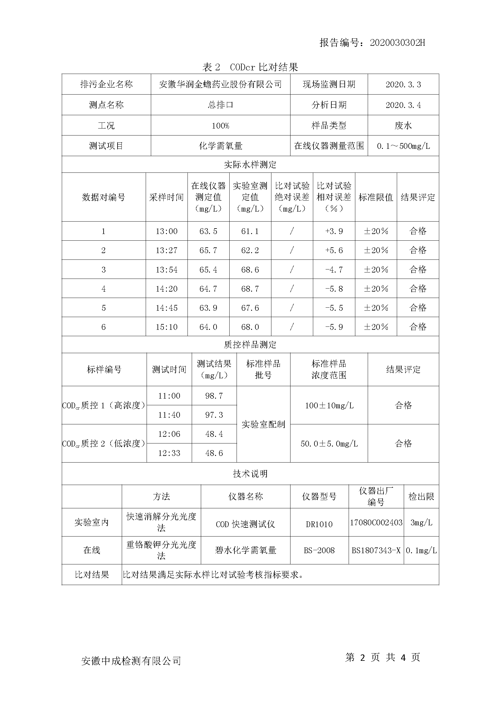 华润金蟾污染物排放检测报告(2020年二季度)