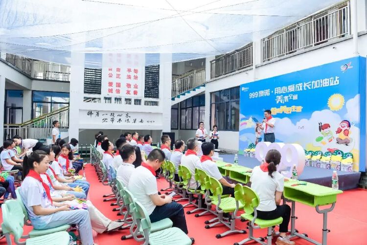 ¡°999°Äŵ¡¤×¨Ðİ®Éú³¤¼ÓÓÍÕ¾ÃÀÊõ¿Õ¼ä¡±¾èÔùÊÚÅÆÒÇʽÔÚ½ðÕ¯»ªÈóÏ£ÍûСѧ¾ÙÐÐ