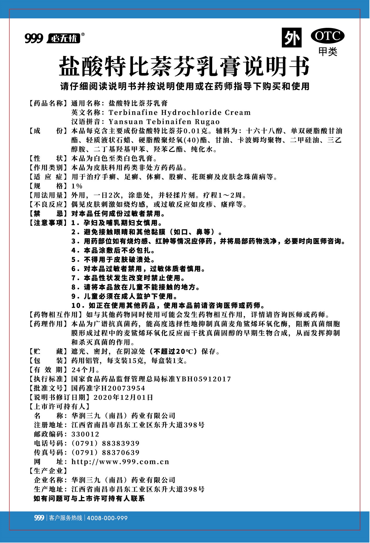 盐酸特比萘芬乳膏