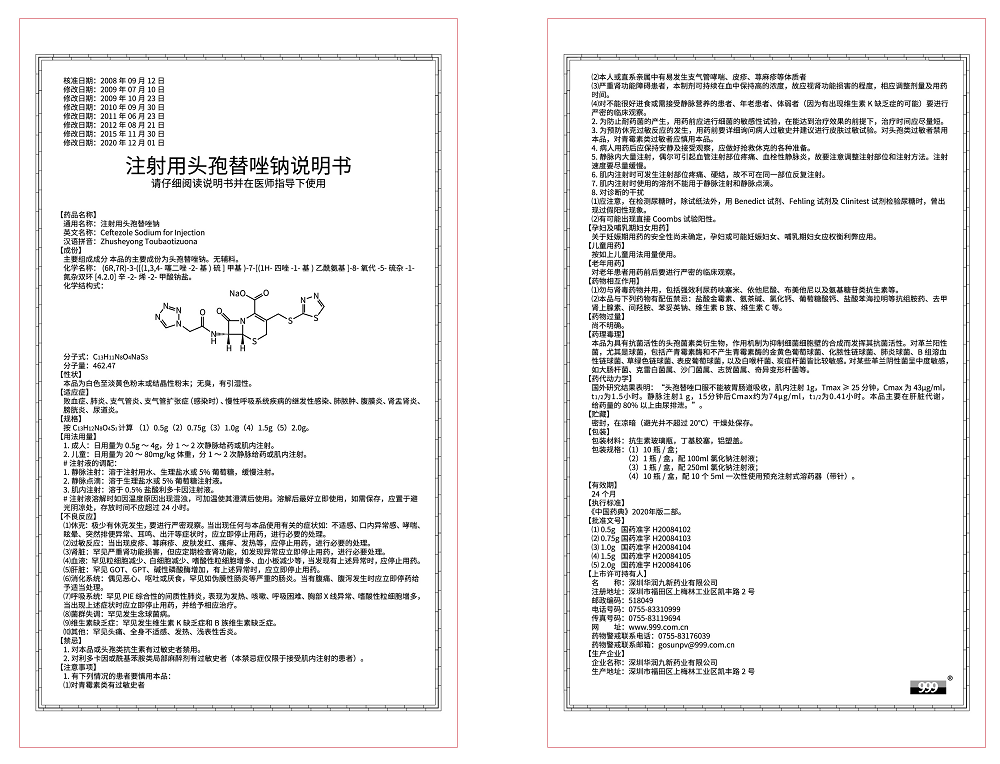 <dt>药品名称</dt><dd>注射用头孢替唑钠</dd>