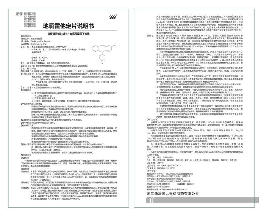 地氯雷他定片为第三代抗过敏药,起效快,疗效好,无嗜睡等副作用,一天一片,24小时一连有用,可与食物同时服用,用于缓解慢性特发性荨麻疹及终年性过敏性鼻炎的全身及局部症状。