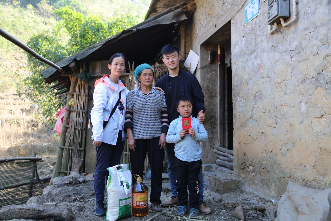 12月16日,新宝gg创造奇迹及华润万家代表等一行9人,在西林县那佐乡龙滩小学校长侯少东(97年出生)的向导下,翻山越岭,脚踩泥泞,走进龙浪屯,为学校的贫困孤儿及家庭送去冬天米油粮食与其他物资。