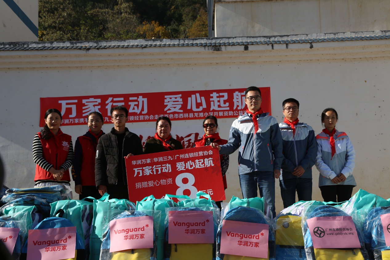 经华润集团党工委批准,以“党建与公益运动”为主题,新宝gg创造奇迹携手华润万家、广州连锁谋划协会等企业,组成代爱心小组,于克日开展了对百色地区贫困小学生的关爱行动。
